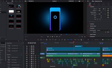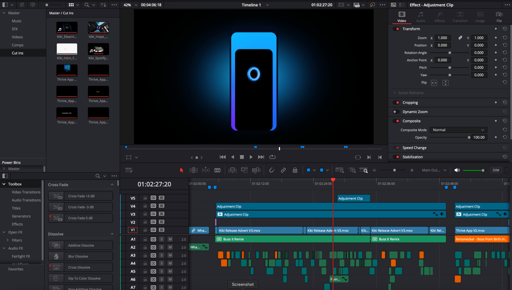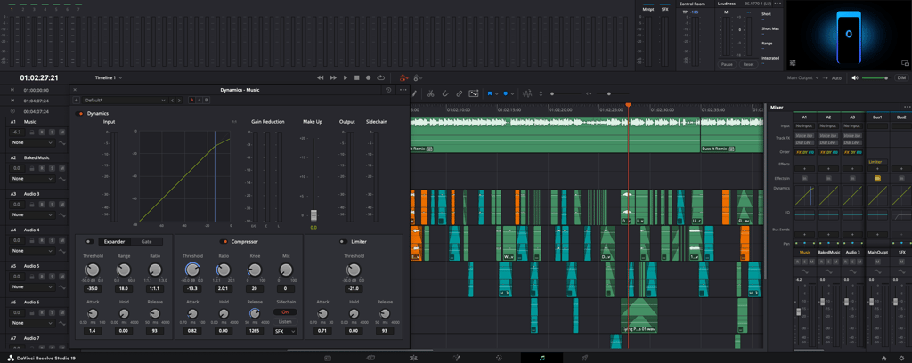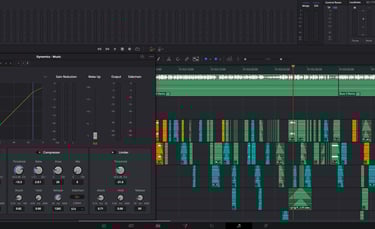 I finalised with some basic colour correction and grain to avoid banding rendering down from 16 bit to 8bit, and edited extra sound effects within Davinci Resolve. The SFX track was side chained to the music track to automate volume correction and balance the SFX against the music.