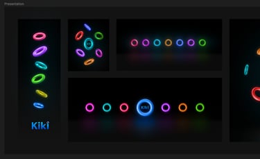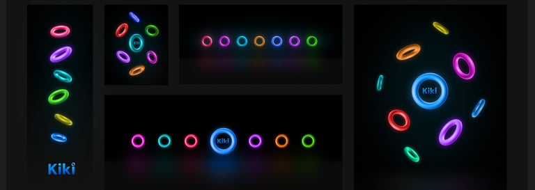 I began with graphic exploration around some designs in use by the UI team. They were using a simple halo like icon, but wished to explore visual concepts further to refine the design. With direction from the CEO that the design should facilitate personalisations with customers own brands, I explored the idea of multiple colour offerings. The ability to customise the AI character later became part of the products feature. This was to be a running theme through out all the designs and animation.