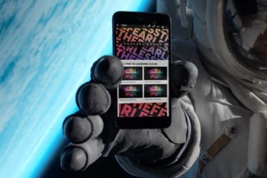 For the astronaut live action shot, I compiled separate earth footage with the astronaut flying towards the camera, and also tracked the app footage to the smartphone. I used Fusion and its corner pin tracker to track the screen on the original footage, applied grain and animated screen reflections to add to it's believability. I also had to manually rotoscope the astronaut as that footage was not against a green/blue screen.